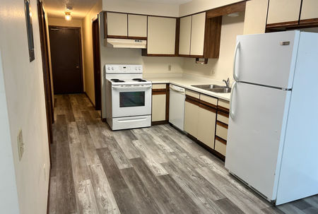 This is spacious 2 bedroom apartment with brand new LVP flooring throughout the unit. There is also a dishwasher and patio door off the living area. The unit also has a wall sleeve A/C unit for cooling. There is off-street parking and coin-operated laundry on-site
